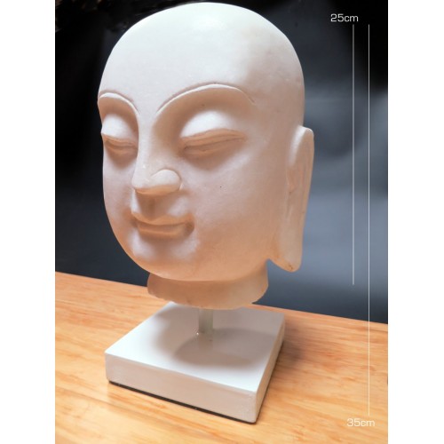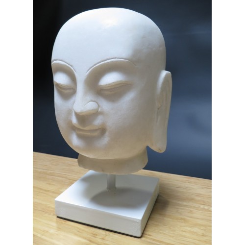 S006 - STATUE TETE BOUDDHA EN MARBRE BLANC