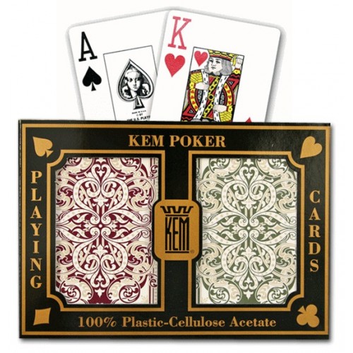 KEM, le nom dit tout. Les joueurs de cartes professionnels et les casinos ont été les premiers à utiliser les cartes à jouer KEM, et ils le font encore aujourd'hui! les cartes KEM sont toutes simplements différentes. Les cartes KEM sont produites en utilisant un matériau cellulose unique : l'acétate ce qui explique pourquoi les cartes KEM durent si longtemps, plus douce au toucher, elles glissent sans effort sur la table, et se melangent avec une extreme facilité. les Cartes KEM sont un excellent investissement