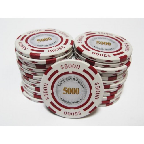 25 jetons de poker MC EAST DOLLAR 5000 BLANC