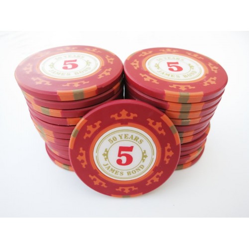 25 jetons de poker 5 ROUGE James Bond Anniversaire